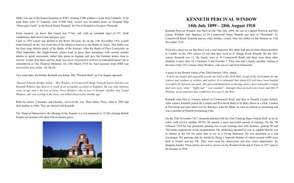 Kenneth Window has died as a result of an aeroplane accident in England. He was only nineteen