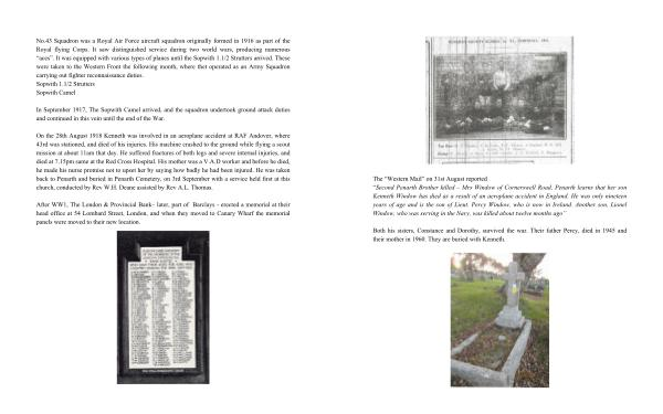 Kenneth Window has died as a result of an aeroplane accident in England. He was only nineteen