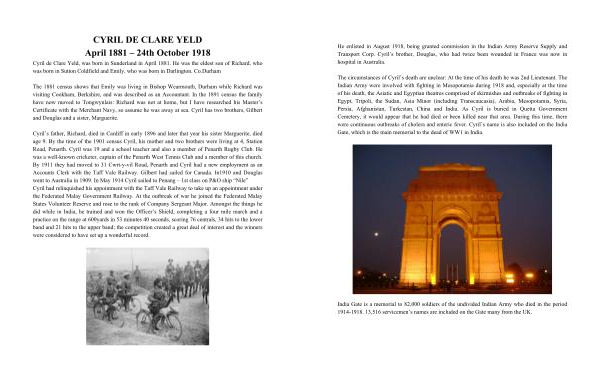 Cyril de Clare Yeld, was born in Sunderland in April 1881. He was the eldest son of Richard, who