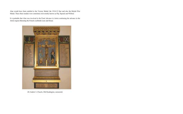Alan would have been entitled to the Victory Medal, the 1914-15 Star and also the British War