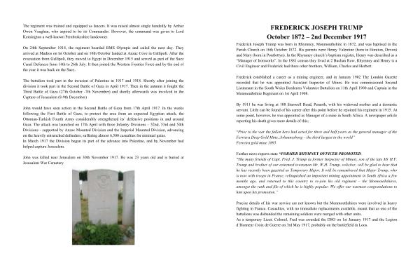 Frederick Joseph Trump was born in Rhymney, Monmouthshire in 1872, and was baptised in the