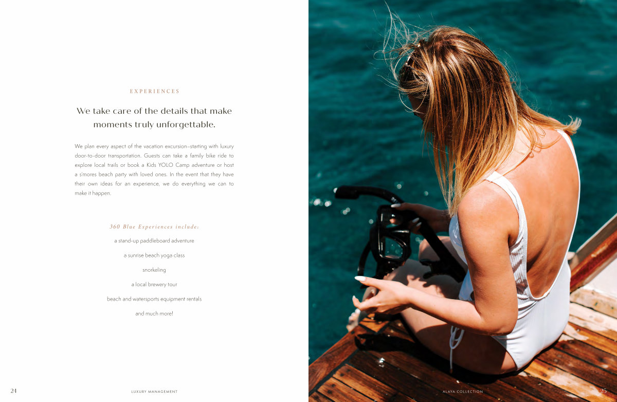 We plan every aspect of the vacation excursion ā starting with luxury door-to-door transportation. Guests can take a family bike ride to explore local trails or book a Kids YOLO Camp adventure or host a sā mores beach party with loved ones. In the event that they have their own ideas for an experience, we do everything we can to make it happen.
