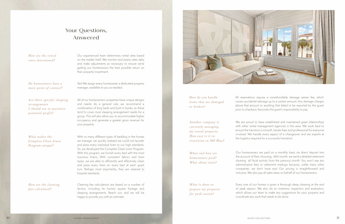 Our homeowners are paid on a monthly basis via direct deposit into the account of their choosing. Mid-month, we send a detailed statement showing all fiscal activity from the previous month. You won’ t see any administrative fees or statement markups because, unlike many other companies, we don’ t have any! Our pricing is straightforward and inclusive. We also pay all sales taxes on behalf of our homeowners.