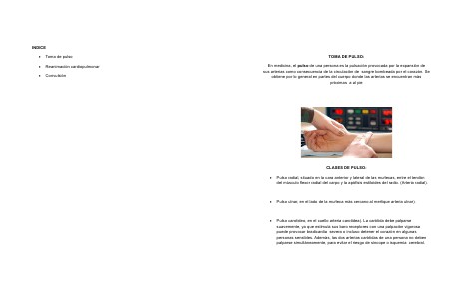 INDICE Toma de pulso Reanimación cardiopulmonar Convulsión