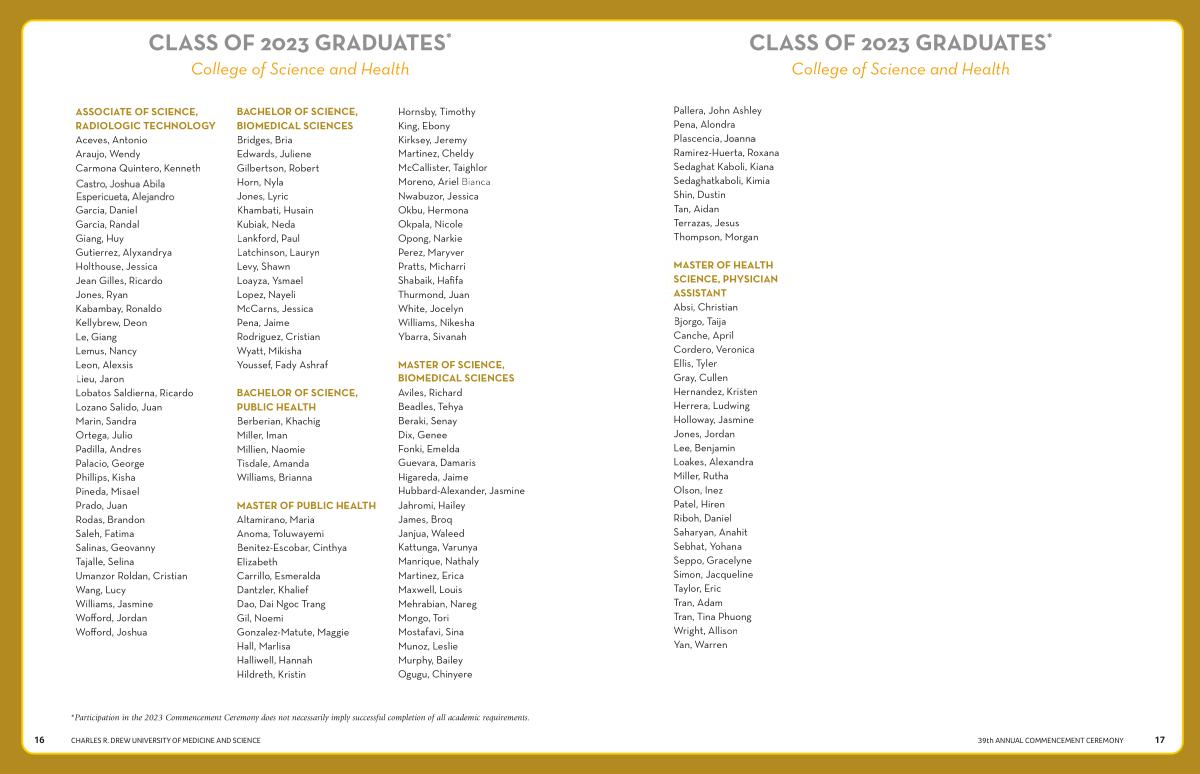 CLASS OF 2023 GRADUATES * College of Science and Health