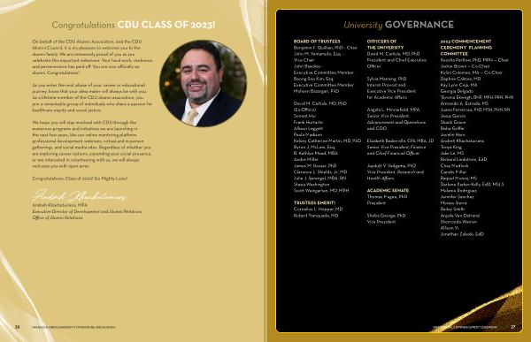 2023 COMMENCEMENT CEREMONY PLANNING COMMITTEE Keosha Partlow , PhD , MPH — Chair Jackie Brown — Co-Chair Kolini Coleman , MA — Co-Chair Daphne Calmes , MD Kay Lynn Ceja , MA Georgia Delgado Tavonia Ekwegh , DNP , MPH , PRN , PHN Armando A . Estrada , MS Juana Ferrerosa , PhD , MSN , PHN , RN Jesus Garcia Shanti Grace Risha Griffin Jocelin Haro Andreh Khachaturians Tonya King Jake Le , MS Richard Lindstrom , EdD Chaz Medlock Candis Miller Raquel Munoz , MS Darlene Parker-Kelly , EdD , MSLS Melanie Rodriguez Jennifer Sanchez Moises Sierra Bailey Smith Anjaila Van Ostrand Shorronda Warren Allison Yi Jonathan Zaleski , EdD