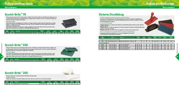 Principali impieghi Il prodotto è utilizzabile per pulizie regolari nelle cucine o più in generale per: piani di lavoro, banchi, pareti, pavimenti, scale, attrezzature in genere. Scotch-Brite ™ Tampone Verde 550 è costituito da una fibra molto aggressiva e deve essere usato su superfici non intaccabili dall’ azione abrasiva.