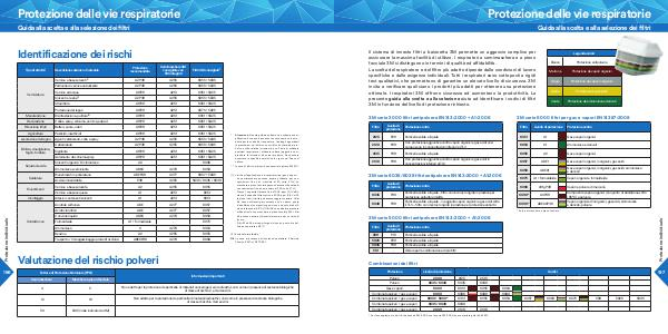 Il sistema di innesto filtri a baionetta 3M permette un aggancio semplice per assicurare la massima facilità di utilizzo. I respiratori a semimaschera e a pieno facciale 3M si distinguono in termini di qualità ed affidabilità. La scelta del respiratore e del filtro più adatto dipende dalle condizioni di lavoro specifiche e dalle esigenze individuali. Tutti i respiratori sono sottoposti a rigidi test qualitativi, che permettono di garantire un elevato livello di sicurezza. 3M invita a verificare quali siano i prodotti più adatti per ottenere una protezione ottimale. I respiratori 3M offrono sicurezza ed aumentano la produttività. La presente guida alla scelta e alla selezione aiuta ad identificare i codici di filtri 3M in funzione del livello di protezione richiesto.
