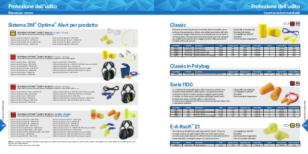 Inserti auricolari E-A-Rsoft Fx- SNR 39 dB Inserti auricolari No-Touch- SNR 35 dB Inserti auricolari Push-ins- SNR 38 dB Inserti auricolari Ultrafit X- SNR 35 dB Cuffie protettive Optime III- SNR 34 / 35 dB( in base al modello) Cuffie protettive Bull’ s Eye III- SNR 35 dB Cuffie protettive X3- SNR 32 / 33 dB( in base al modello) Cuffie protettive X4- SNR 32 / 33 dB( in base al modello) Cuffie protettive X5- SNR 36 / 37 dB( in base al modello)