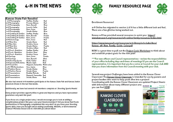 We also had several 4-H members participate at the Kansas State Fair and Kansas Junior Livestock Shows in the last few weeks.