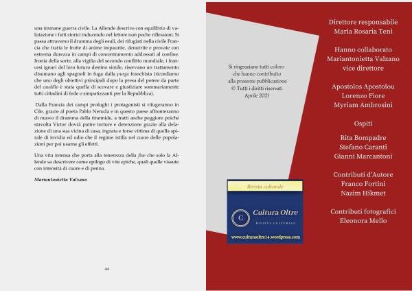 una immane guerra civile . La Allende descrive con equilibrio di valutazione i fatti storici inducendo nel lettore non poche riflessioni . Si passa attraverso il dramma degli esuli , dei rifugiati nella civile Francia che tratta le frotte di anime impaurite , denutrite e provate con estrema durezza in campi di concentramento addossati al confine . Ironia della sorte , alla vigilia del secondo conflitto mondiale , i francesi ignari del loro futuro destino simile , riservano un trattamento disumano agli spagnoli in fuga dalla purga franchista ( ricordiamo che uno degli obiettivi principali dopo la presa del potere da parte del caudillo è stata quella di scovare e giustiziare sommariamente tutti cittadini di fede o simpatizzanti per la Repubblica ).