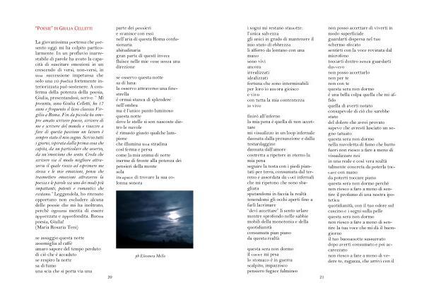 questa sera non dormo il cuore mi pesa lo stomaco è in guerra scalpito , impazzisco pensiero fugace fulmineo non posso accettare di viverti in modo superficiale guardarti dispersa nel tuo schermo sfocato sentirti con la voce rovinata dal microfono toccarti dentro senza guardarti davvero non posso accettarlo non per te non con te questa sera non dormo è una bella colpa quella che mi affido quella di averti notato consapevole di ciò che sarebbe stato del dolore che avrei provato sapevo che avresti lasciato un segno tatuato questa sera non dormo nella nuvoletta di fumo che butto fuori non riesco a fare a meno di visualizzare noi in una reale e così vera realtà talmente concreta da poterla toccare con mano da poterti toccare piano questa sera non dormo perché non riesco a fare a meno di sentire il profumo di una nostra ipotetica quotidianità , con il tuo odore sul cuscino e i segni sulla pelle questa sera non dormo non riesco a fare a meno di sentire la tua voce che mi dà il buongiorno il tuo buonanotte sussurrato dopo averti consumato e poi accarezzato non riesco a fare a meno di vedere te , ragazza , che arrivi con il
