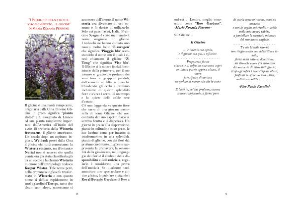 … e intanto era aprile , e il glicine era qui , a rifiorire . . . . . . . . . . . . . . . . . . . . . . . . . . . . Prepotente , feroce rinasci , e di colpo , in una notte , copri un intera parete appena alzata , il muro principesco di un ocra screpolato al nuovo sole che lo cuoce … E basti tu , col tuo profumo , oscuro , caduco rampicante , a farmi puro di storia come un verme , come un monaco : e non lo voglio , mi rivolto – arido nella mia nuova rabbia , a puntellare lo scrostato intonaco del mio nuovo edificio . . . . . . . . . . . . . . . . . . . . . . . . . . . . Tu che brutale ritorni , non ringiovanito , ma addirittura rinato , furia della natura , dolcissima , mi stronchi uomo già stroncato da una serie di miserabili giorni , ti sporgi sopra i miei riaperti abissi , profumi vergine sul mio eclissi , antica sensualità . . . . . . . . .