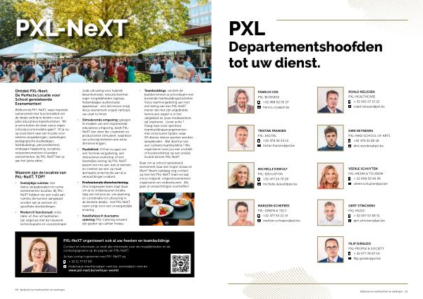 Welkom bij PXL-NeXT , waar inspiratie samensmelt met functionaliteit om de ideale setting te bieden voor al jullie educatieve bijeenkomsten . Wil je eens buiten de sfeer van je eigen schoolaccommodatie gaan ? Of je nu op zoek bent naar een locatie voor externe vergaderingen , opleidingen , pedagogische studiedagen , teambuildings , personeelsfeest , eindejaars happening , recepties , netwerkmomenten of andere evenementen , bij PXL-NeXT ben je aan het juiste adres .