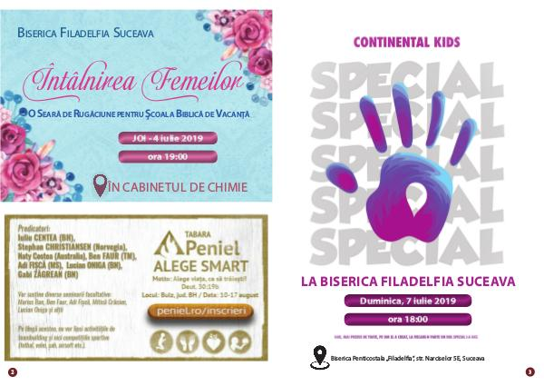 LA BISERICA FILADELFIA SUCEAVA Duminica, 7 iulie 2019 ora 18:00 Biserica Penticostala „Filadelfia”, str. Narciselor 5E, Suceava 3