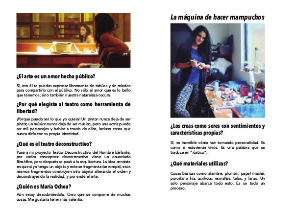 Puse a mi proyecto Teatro Deconstructivo del Hombre Elefante, por varios conceptos: deconstructivo viene un enunciado filosófico, pero después se pasó a la arquitectura. La idea consiste en que si yo tengo un objeto y este se fragmenta( se rompe), esos mismos fragmentos construyen otro objeto alterando el orden y deconstruyendo la realidad, y por ende el arte.