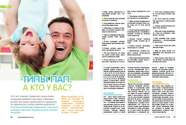 Этот тест поможет определить, какую линию поведения выбирает ваш супруг в общении с детьми. Тест можно пройти вместе с мужем или по отдельности, а потом сравнить результаты. Если ваши ответы будут кардинально отличаться, возможно, вам стоит обсудить вопросы воспитания детей.