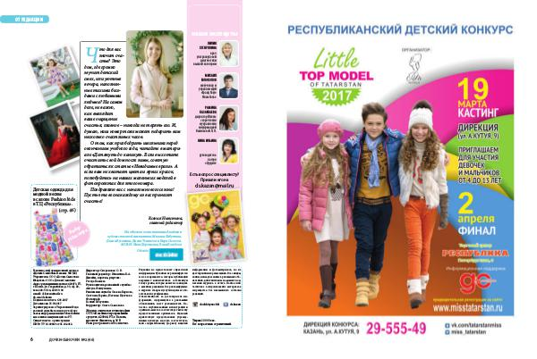 Директор: Сперанская О. В. Главный редактор: Никитина К. А. Дизайн, верстка, prepress: Резеда Камаева Руководитель рекламной службы: Айгуль Файзуллина Рекламная служба: Оксана Карпова, Cветлана Гарина, Наталья Цветкова Фотограф: Ксения Гатауллина Корректор: Ольга Самсонова