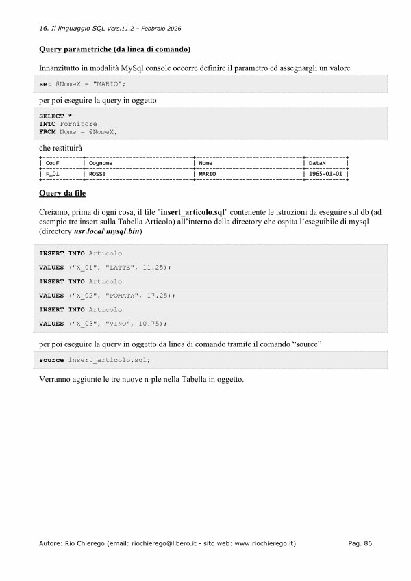 16. Il linguaggio SQL Vers. 11.2 – Febbraio 2026