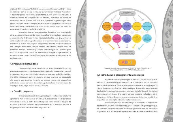 digitais ( HQD ) intituladas “ OuSADAs em : uma experiência com a ABPj ”; 1 vídeo de animação com o uso da técnica cut-out animation intitulado “ Literatura : o despertar para a sabedoria ”). Desta forma , a ABPj consolidou na turma o desenvolvimento de competências de trabalho , motivando os alunos na construção de um produto final conjunto , tornando a aprendizagem mais significativa por meio da integração de conceitos que perpassaram várias áreas , articulando os objetivos cognitivos , sociais e emocionais em busca de experiências inovadoras no âmbito da UFPA .