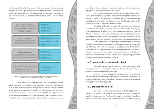 metodologia ABPj . Além disso , a construção desse produto final demandou a definição de um cronograma de atividades que foi concretizado em fases . Essas são características também privilegiadas pela metodologia Aprendizagem Baseada em Projetos , que delinearam a formação de quatro equipes centrais a saber :