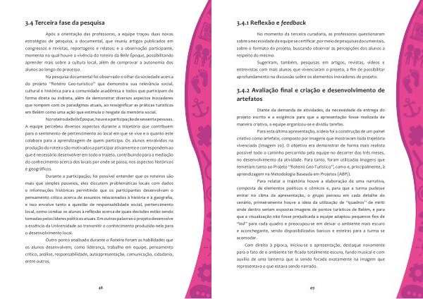 Após a orientação das professoras , a equipe traçou duas novas estratégias de pesquisa , a documental , que reuniu artigos publicados em congressos e revistas , reportagens e relatos ; e a observação participante , momento no qual houve a vivência do roteiro da Belle Époque , possibilitando aprender mais sobre a cultura local , além de comprovar a autonomia dos alunos ao longo do processo .