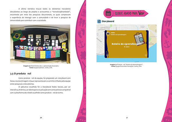 Como produto final da equipe , foi preparado um storyboard com fotos e textos ( Imagem 21 ) que representavam o caminho trilhado pela equipe entre pesquisas e descobertas .