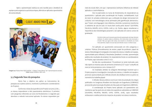 Dos 114 aprovados no Curso de Nivelamento , 82 responderam ao questionário 1 aplicado pela coordenação do Projeto , contabilizando 71,9 % do total . Os achados evidenciam que a utilização do design instrucional em conjunto com metodologias ativas permeado pela gamificação demonstrou que “ trazer uma linguagem mais dinâmica , divertida e prazerosa transforma o ambiente de sala de aula e é muito bem aceita pelos alunos ” ( OLIVEIRA ; PALHETA ; MAUÉS ; LEITE ; COSTA , 2018 , p . 9 ). Porém , alguns ressaltaram a importância das metodologias passarem a ser aplicadas em outros cursos de graduação .
