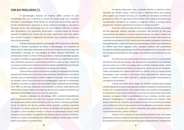 O terceiro critério considerado foram as questões auxiliares , cada equipe em seu subprojeto delineou questões norteadoras que serviram de base para construção de seus objetivos e metas a serem alcançadas . Já o quarto critério , o da autonomia dos alunos na execução dos projetos pode ser comprovado na busca de experiências inovadoras na UFPA , tendo como instrumento norteador o Sistema de Acompanhamento e Desenvolvimento da Aprendizagem ( SADA ), que estabeleceu os critérios que foram seguidos como , pesquisar projetos com experiências inovadoras no âmbito da graduação na UFPA que trabalhassem em áreas diferentes da formação dos discentes de cada equipe e que estivesse em andamento no ano vigente .