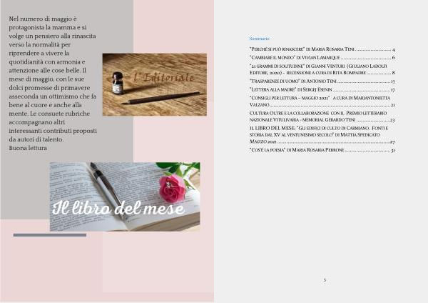 " PERCHÉ SI PUÒ RINASCERE " DI MARIA ROSARIA TENI ............................ 4 " CAMBIARE IL MONDO " DI VIVIAN LAMARQUE ....................................... 6 " 21 GRAMMI DI SOLITUDINE " DI GIANNI VENTURI ( GIULIANO LADOLFI EDITORE , 2020 ) - RECENSIONE A CURA DI RITA BOMPADRE ................... 8 " TRASPARENZE DI UOMO " DI ANTONIO TENI ......................................... 13 " LETTERA ALLA MADRE " DI SERGEJ ESENIN ............................................ 17