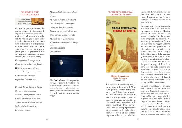 Barbara è una giovane donna che ama la letteratura ed il teatro . Ha raggiunto la nonna a Messina perché desidera realizzare se stessa , svincolandosi da un destino progettato dal padre che rispecchia gli stereotipi dell ’ epoca . La sua fuga da Reggio Calabria avrebbe dovuto rappresentare la libertà di scegliere e decidere della propria vita , inseguendo il sogno della letteratura e della scrittura Quella notte , invece , lei si trova indifesa e spaurita dinnanzi al dolore ed alla morte . Ma il buio ha dei piccoli spiragli di luce : Barbara incontra delle persone che sembrano condurla , dopo la cupa disperazione , verso la speranza : una comunità monastica che sta organizzando i soccorsi della città ed una vecchia conoscente della nonna che l ’ ha riconosciuta .