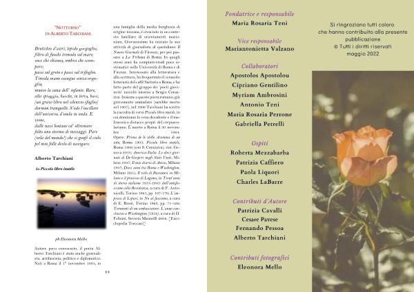 Alberto Tarchiani da Piccolo libro inutile una famiglia della media borghesia di origine toscana , è cresciuto in un contesto familiare di orientamenti mazziniani , Giovanissimo ha iniziato la sua attività di giornalista al quotidiano Il Nuovo Giornale di Firenze , per poi passare a La Tribuna di Roma . In quegli stessi anni ha compiuto studi poco sistematici nelle Università di Roma e di Firenze . Interessato alla letteratura e alla scrittura , ha frequentato il cenacolo letterario del caffè Sartoris a Roma , e ha fatto parte del gruppo dei ‘ poeti giovinetti ’ raccolti intorno a Sergio Corazzini . Insieme a questo poeta romano , già gravemente ammalato ( sarebbe morto nel 1907 ), nel 1906 Tarchiani ha scritto la raccolta di versi Piccolo libro inutile , in cui dominano la vena decadente e il malinconico distacco propri del crepuscolarismo . È morto a Roma il 30 novembre 1964 . Opere . Prima de le stelle : dramma di un atto , Roma 1905 ; Piccolo libro inutile , Roma 1906 ( con S . Corazzini ), rist . Genova 2013 ; America-Italia . Le dieci giornate di De Gasperi negli Stati Uniti , Milano 1947 ; Il mio diario di Anzio , Milano 1947 ; Dieci anni tra Roma e Washington , Milano 1955 ; Il volo di Bassanesi su Milano e il processo di Lugano , in Trent ’ anni di storia italiana 1915-1945 : dall ’ antifascismo alla Resistenza , a cura di F . Antonicelli , Torino 1961 , pp . 167-170 ; L ’ impresa di Lipari , in No al fascismo , a cura di E . Rossi , Torino 1963 , pp . 71-126 ; Tormenti di un ambasciatore . L ’ anno conclusivo a Washington ( 1954 ), a cura di D . Felisini , Soveria Mannelli 2006 . [ Enciclopedia Treccani ] ph Eleonora Mello