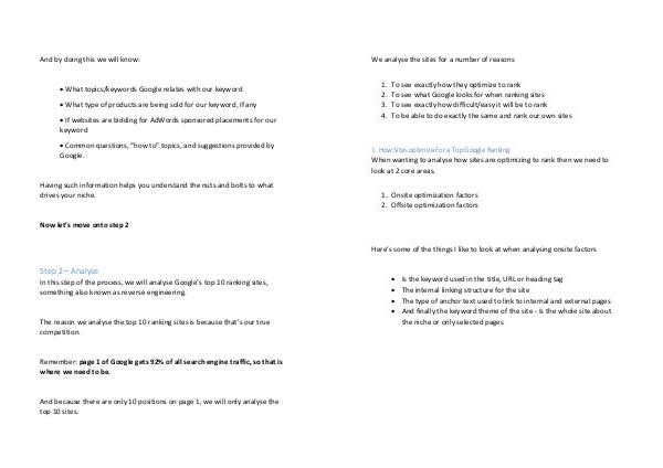 In this step of the process, we will analyse Google’ s top 10 ranking sites, something also known as reverse engineering.