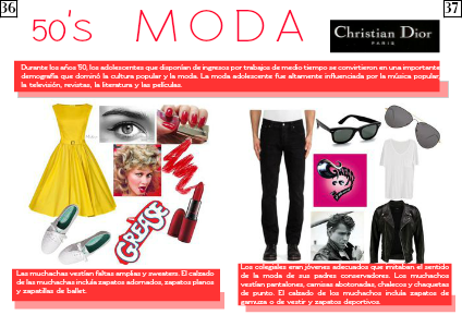 Durante los años '50, los adolescentes que disponían de ingresos por trabajos de medio tiempo se convirtieron en una importante demografía que dominó la cultura popular y la moda. La moda adolescente fue altamente influenciada por la música popular, la televisión, revistas, la literatura y las películas.