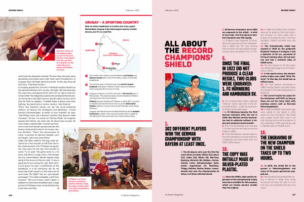 2 Minas awful and the deception worked . The next day , the spies were absolutely astonished when their team were thrashed 6-1 . In Uruguay , they still laugh about the prank . To this day , they call this story “ The Resurrection .“ In Uruguay , people love “ la lucha “ in football , explains Gastón as the second half kicks off . La lucha , the fight , still characterises the style here , and people often refer to it as “ garra charrúa “, named after the indigenous people who produced feared warrior horsemen in the 16th century . Gastón doesn ‘ t have a lot of time for that , he explains . “ Football today is about more than fighting . You need tactics , tactics , tactics . I like thinking .“ That ‘ s why Gastón ‘ s heroes are not the much-acclaimed strikers . He favours the strategists and defenders . “ I loved Bastian Schweinsteiger , ‘ el motor ’ of your football ,“ he says , “ and Philipp Lahm , like a German machine that doesn ‘ t make mistakes .“ He has “ no words for Thomas Müller : he imagines spaces that others can never see . He also knows no pain . He never stops . Unbelievable .“ A particular favourite is one that Gastón pronounces like the Korean national dish kimchi . He means Joshua Kimmich : “ That ‘ s the reincarnation of Lahm . A promise for German football . Let ‘ s not forget : Lahm won everything .“ Under the table , Violetta , the dog , waits patiently for a few morsels to fall from the table , while around it , the “ FC Bayern Uruguay “ fan club waits for the men from Munich to score . To no avail . The game ends in a 1-1 draw and there ‘ s no big victory ride through the city . Nevertheless , Gastón happily sings along to the music on the car radio . “ It was a good day for our young fan club . We ‘ ll continue to grow ,“ he says . A stuffed lion on the dashboard is a bit confusing : did he not know that that ‘ s what ’ s on the club crest of arch-rivals TSV 1860 ? “ No , no ,“ says Gastón