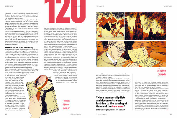 Since the opening of the FC Bayern Museum in 2012 , the historians have not only been working on further developing the permanent exhibition , but also regularly stage special exhibitions . In 2019 , under the title “ Between the studio and the pitch “, some of the founding fathers who belonged to the Munich artists milieu were portrayed in more detail : the illustrator and graphic artist Otto Ludwig Naegele ; the painter , sculptor and later aircraft pioneer Wilhelm Focke and the sculptor Benno Elkan . To mark the club ‘ s 125th anniversary , the FC Bayern Museum is planning a book about the “ Fathers of success “, the 17 founding members . We now want to find out who the three previously unknown men were . Their names according to the charter : Wilhelm Hirsch , August Evers and Erich Gottschalk – or is his first name Ludwig ? And is the surname completely different ? While the first two signatures are easy to read , the signature of the presumed “ Erich Gottschalk “ is not . And so the search begins with an enquiry to the Leipzig historian and expert on old manuscripts Pierre Meinig . He also initially thinks he recognises the name Erich Gottschalk . But then slight doubts creep in . The surname could also be Gottschall or Gottschalck , says Meinig . The only thing he is fairly certain of is that the beginning was “ Gott …“ and the name was abbreviated . And the first name ? It could also be “ Lud .“, Meinig thinks , the abbreviation for Ludwig . The absence of the dot on the i and the tiny full stop at the end of the name – provided it ‘ s not a smudge – would support this . Could we send him a better scan of the document ? A facsimile of the original foundation charter is on display in a