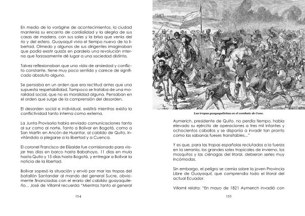 En medio de la vorágine de acontecimientos , la ciudad mantenía su encanto de cordialidad y la alegría de sus casas de madera , con sus soles y la brisa que venía del río y del estero . Guayaquil vivía el tiempo nuevo de la libertad . Olmedo y algunos de sus dirigentes imaginaban que podía existir quizás en paralelo una revolución interna que forzosamente dé lugar a una sociedad distinta .