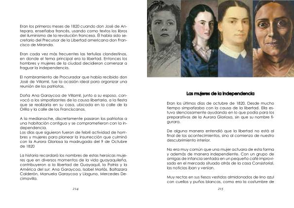 La historia recordará los nombres de estas heroicas mujeres que en diversos momentos de la vida guayaquileña , contribuyeron a la libertad de Guayaquil , la Patria y la América del sur : Ana Garaycoa , Isabel Morlás , Baltazara Calderón , Manuela Garaycoa y Llaguno , Mercedes Decimavilla .