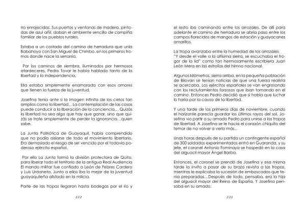 Y una tarde de los primeros días de noviembre , cuando el horizonte parecía guardar los últimos rayos del sol , Josefina vio partir a su amado Pedro para unirse a las tropas de libertad . A Josefina se le hacia el corazón chiquito del temor de no volver a verlo más ...