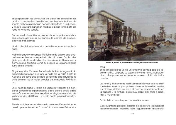 En el río la llegada y salida de vapores y barcos de banderas extranjeras exportando la pepa de oro atraía cada vez más mano de obra , moviendo el gran mercado de las haciendas del litoral … y nada hacía presentir una tragedia .