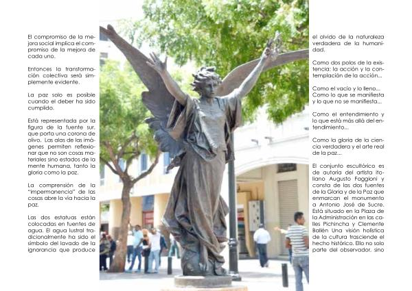 Está representada por la figura de la fuente sur , que porta una corona de olivo . Las alas de las imágenes permiten reflexionar que no son cosas materiales sino estados de la mente humana , tanto la gloria como la paz .