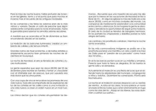 monios … Recuerdo que una maestra de escuela me dijo que por lo menos en las vacaciones de Navidad se iba a librar de mí … En algunas iglesias la misa de Gallo era a las doce ( 00:00 ), como en muchas ciudades del mundo . Las campanas de medianoche sorprendían a la comunidad entre cantos y villancicos , En los hogares la gente se abrazaba y bendecía la oportunidad de seguir juntos todavía . El cielo de la ciudad se llenaba de bengalas hermosas . En los portales los chispiadores y diablillos ponían la nota alegre del barrio .