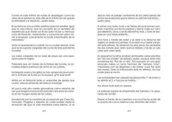 Una hora y media de rodar y se abre a la derecha del viajero un jardín encantado . El sol está muy fuerte y el jardín está solitario . Se observan los altos pinos , las veraneras de dos colores que valen quince dólares y las de un solo color que valen siete .