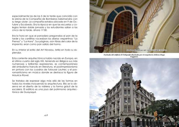 Fachada del edificio El Telégrafo diseñada por el arquitecto chileno Hugo Faggioni .