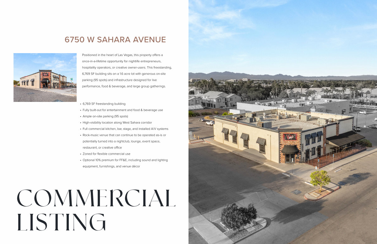 Positioned in the heart of Las Vegas, this property offers a once-in-a-lifetime opportunity for nightlife entrepreneurs, hospitality operators, or creative owner-users. This freestanding, 6,769 SF building sits on a 1.6 acre lot with generous on-site parking( 95 spots) and infrastructure designed for live performance, food & beverage, and large group gatherings.