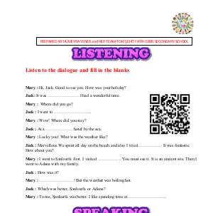 Listen to the dialogue again and then talk about your holidays with