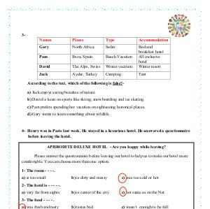 4- Henry was in Paris last week. He stayed in a luxurious hotel. He answered a questionnaire