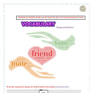 Write the synonym of the given words from the word cloud . (Prepared by Ecem)