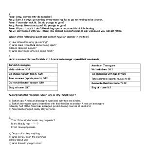 a) Turkish and American teenagers’ weekend activities are similar.