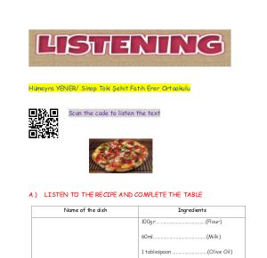 LISTEN TO THE RECIPE AND COMPLETE THE TABLE